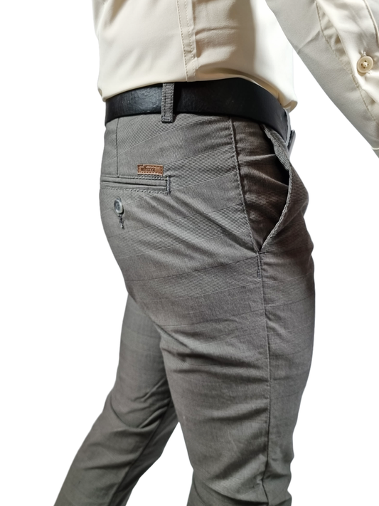 Pantalón Slim gabardina Gris cuadros