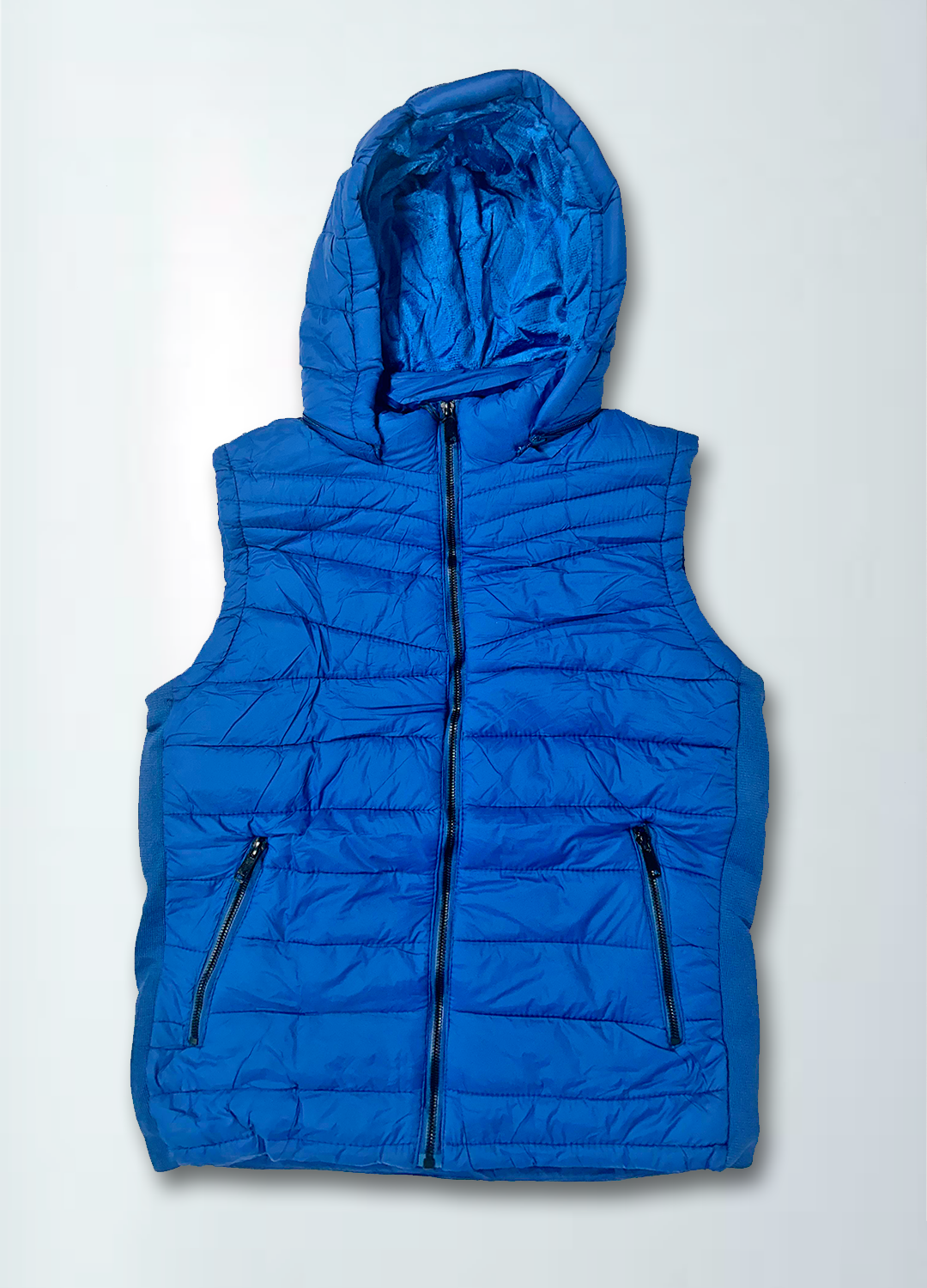 Protege tu cuerpo del frío con nuestro chaleco liso para hombre. Con un gorro desprendible y bolsas con cierre, mantén tus manos calientes y tus objetos seguros. Tienes estilo y funcionalidad en uno solo.