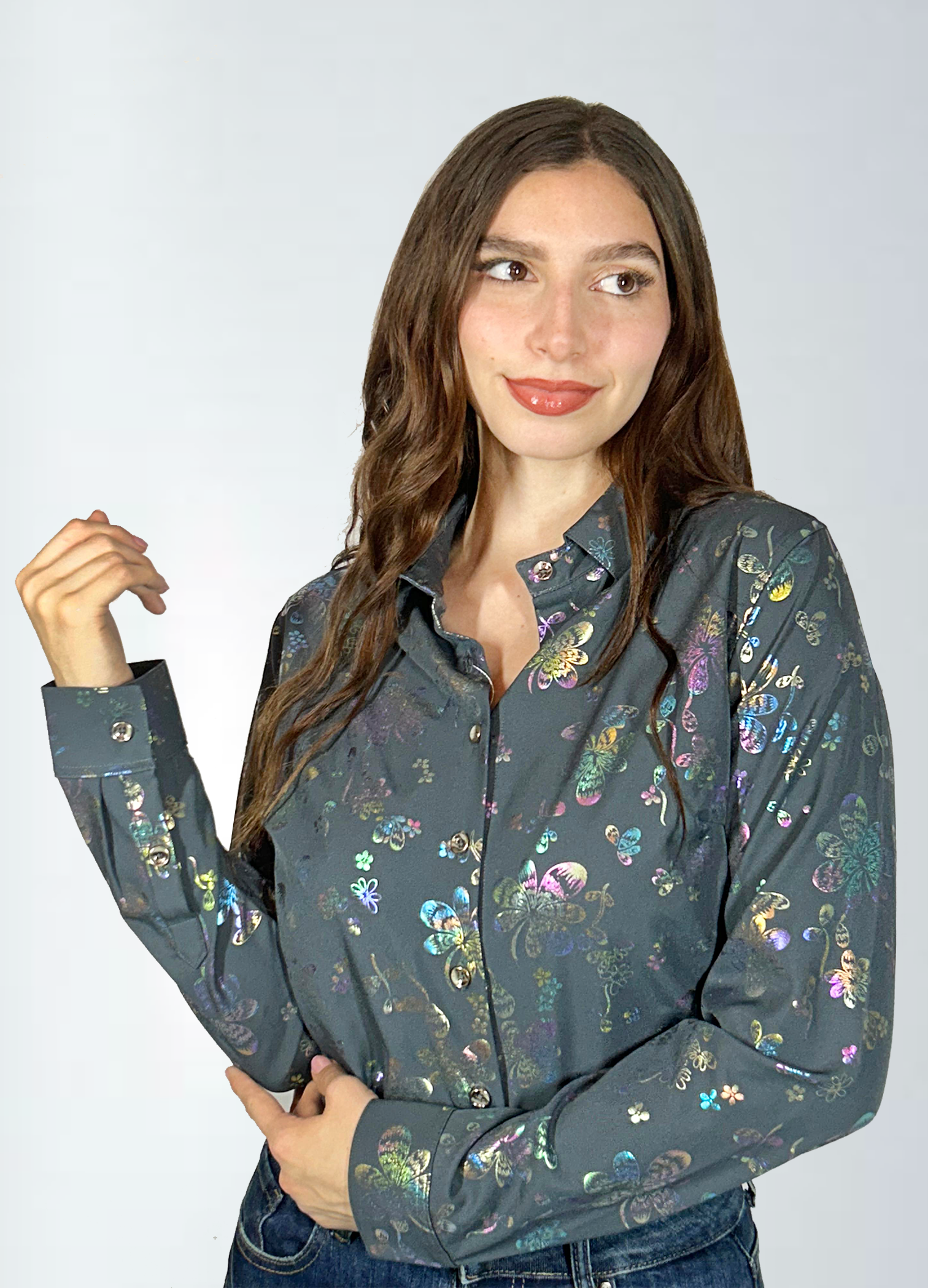 camisa con estampado floral, botones al centro, botón en puño combínala con tus jeans favoritos.
