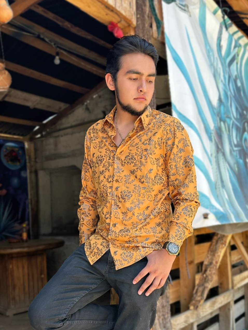 Camisa buchona slim fit de manga larga, podrás lucir un tono mostaza satinado que te destacará en cualquier ocasión. Además, su diseño delgado te brindará un ajuste perfecto para realzar tu figura.